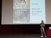 為配合本校“世界閱讀日”系列活動,特別邀請了《共老》一書的本地作家,校友李嘉美(李悅程) 到校分別於4月21及22日共讀時間,為初、高中同學舉行講座。嘉美學姐以“愛的陪伴”及“無悔人生”作主題,分享了她照顧年老嫲嫲的寫實記錄──《共老》一書的創作心路歷程,書中不僅真實記錄了學姐與嫲嫲的抗癌的經歷,也分享了學姐對親情的珍惜和付出,請學弟妹要珍惜身邊最愛的人,學習與家人融洽相處,不要讓自己在失去至親時才懂得後悔。