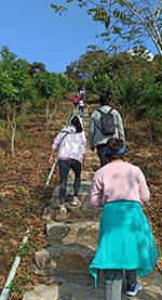 是日天公作美,風和日麗,一行人沿石面盆古道拾級而上,山藝導師陳俊明老師沿途講解路環獨特的地貌、動植物生態環境,大家近距離觀察了澳門多棵的假菩提古樹,讓認到菟絲子等植物的藥用價值,還發現以保護色隱藏在樹幹上的小蜥蜴,靜上在小水窪青蛙,躱在石洞內的小蛇,趣味盎然。過程中大家親身體會到認識生態環境的重要,學習保護生態環境的知識。