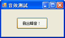 下圖為一個以VB編製的簡單音效播放器,視窗只有一個按鈕(Button1),按下便會發出聲響。